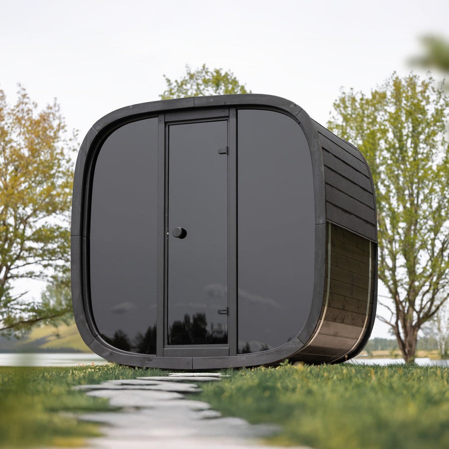 The Black Cube Sauna is the star of the 2025 collection. Featuring durable Thermowood panels and a panoramic glass door, this unit blends seamlessly with contemporary home spaces.